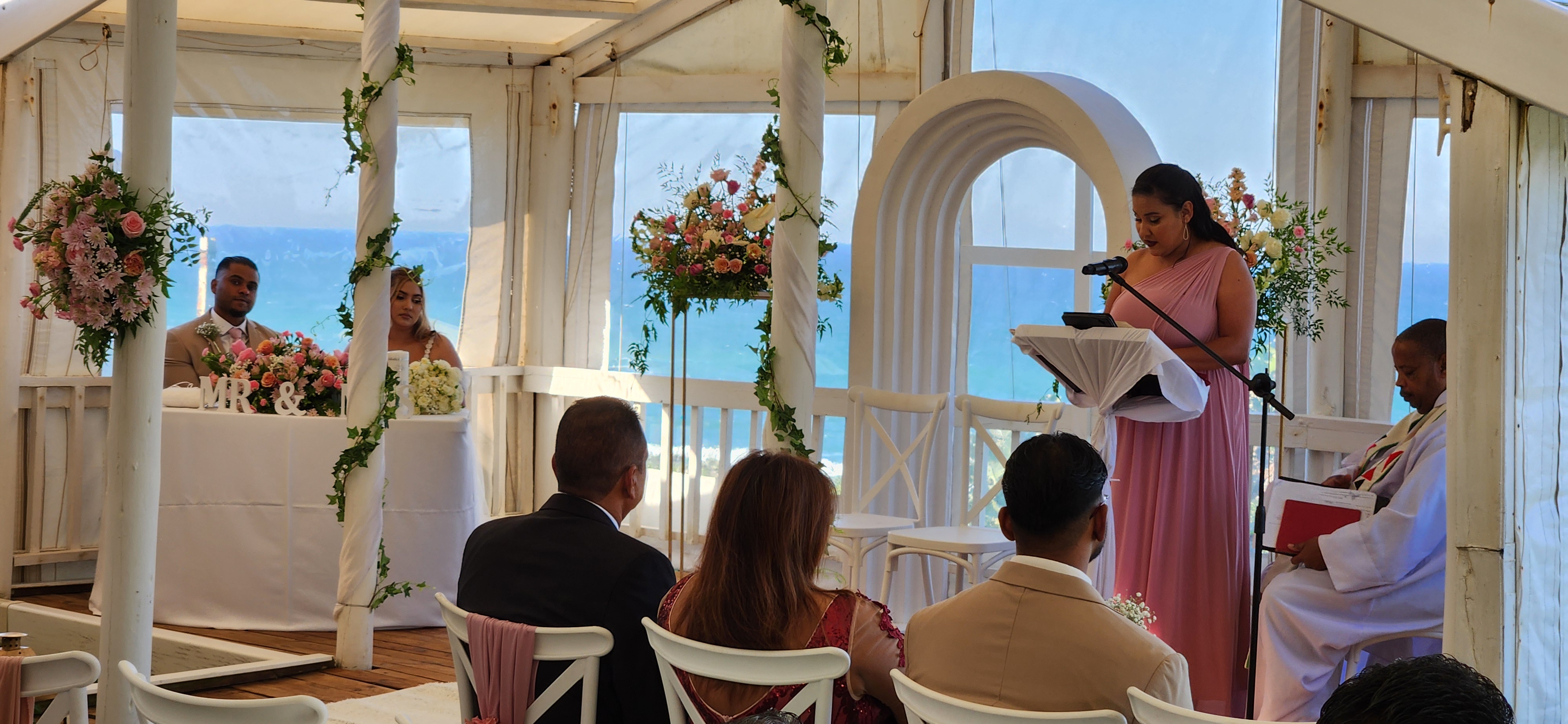The ceremony will be officiated by Father Vincent, with photography beautifully captured by Black Diamond Photography. As the sun sets, DJ Dollar will keep the dance floor alive, and the wedding cake — a masterpiece by Carol from Cake Elegancze — will take centre stage. Décor supplied by Claudine from Magical Events, Port Shepstone, adds the finishing touch to a special day.